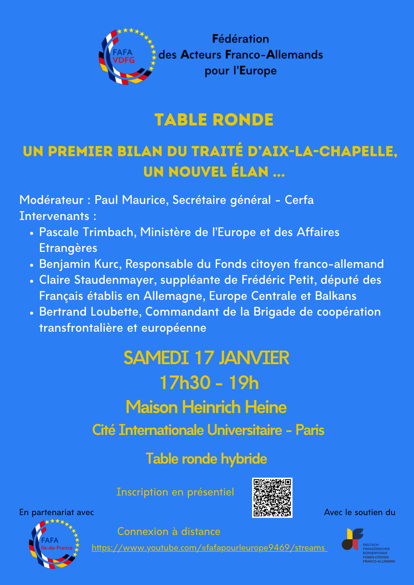 22 janvier : un triple anniversaire 🇫🇷 🇩🇪 : signature du traité de l\'Elysée (1963), instauration de la Journée franco-allemande (2003), signature du traité d\'Aix-la-Chapelle (2019).Le traité d\'Aix-la-Chapelle est entré en vigueur le 22 janvier 2020.Pour fêter le 5e anniversaire de sa mise en oeuvre, la FAFA pour l\'Europe a…